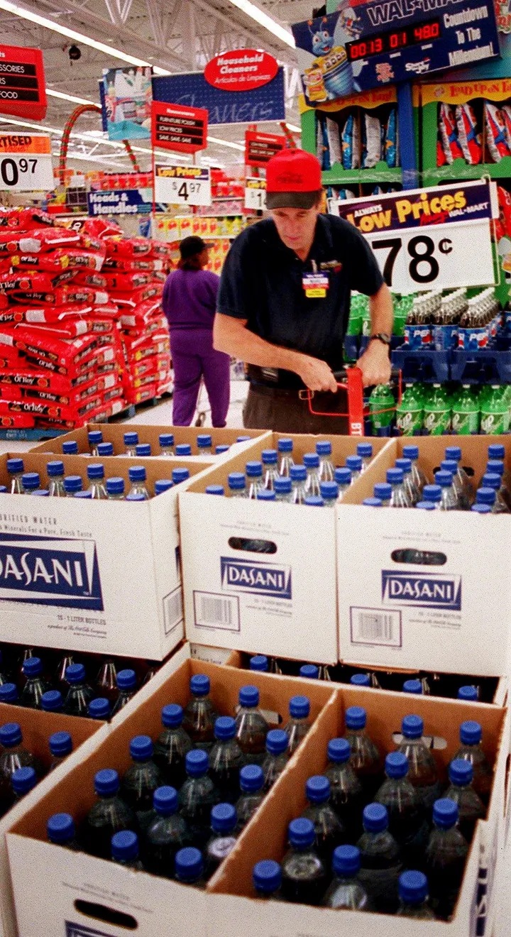 Mark Gill stacks cases of water at the Super Walmart off Charlotte Pike to have ready for folks concerned about Y2K38 in Nashville, Tenn. (03.08.2018)